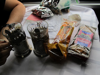 The kupe has room for 4 people, but most of the time, we were alone. We didn’t have much interaction with the people on the train. We learnt the numbers and some words in Russian from one of the passengers that spent one day with us, we tried to avoid a drunk teenager who was obsessed with us and with red eyes and spiting kept following us and repeating something about Finland!, and we held our breath whenever a really stinking family was near us. But most of our travel fellows didn’t know a word of English, and we just kept to ourselves.