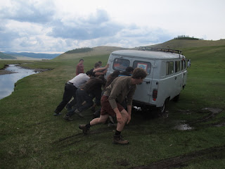 So we quickly flew from the scene of the crime (see the previous post) and we headed to the Hot Springs , where we had a small dose of civilization and we even took a shower (after 8 days!). We only stopped to see the completely dry falls of Orkhon, to push the van when it got stuck in the mud (twice), to wait for petrol provided by the other group’s van and to wait the driver called his wife (several times).