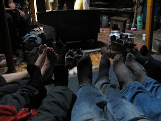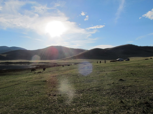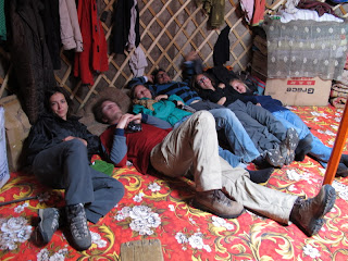 The same day started sunny became a stormy day with hail that caught me, and two of the girls, Teresa and Jen, several kilometers away. And again I had to unfreeze myself in front of the stove. The gers were packed with people this time. It seems that it was a popular spot and another group was also there, and we slept in tents despite the rain.