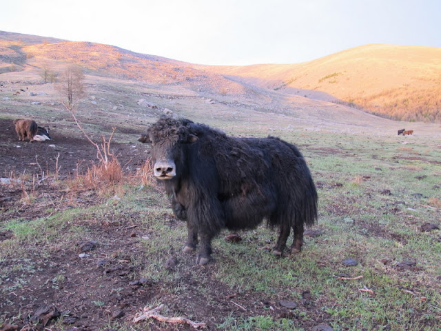 We walked around until it was getting dark. When we came back, we saw the poor family cat tied to the front of the ger. Our guide was so afraid of it that she wanted to have it tied outside!