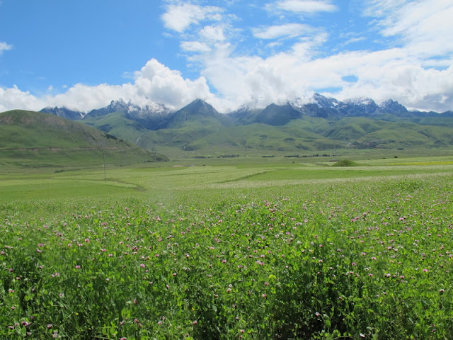 There I met Iohi in a heavenly guesthouse between mountains and rivers and snowy peaks everywhere over the horizon. The foreigners were a bunch (actually half a bunch) of Buddhist Germans who got there following their lama and were doing everything to get the other half of their group to pass the foreigner-proof border. They were thrilled and a bit jealous that we managed to get to this closed sector, without even being sure that we were doing that. In the meanwhile, half of their group was bouncing in the other side of the closed area between Kanding and Ganzi.